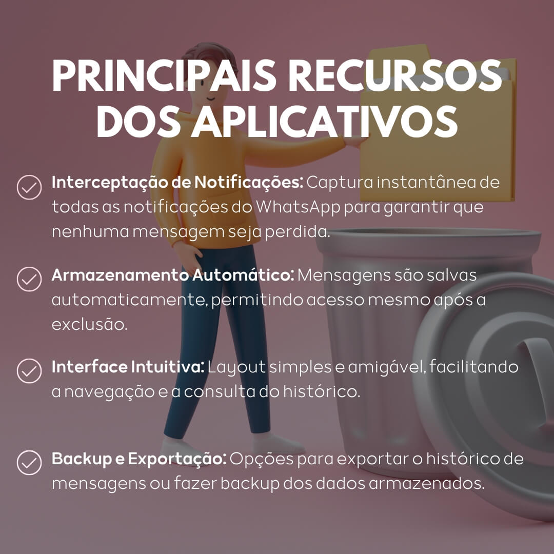 O Delox – Recuperar Mensagem é outra opção que se propõe a recuperar mensagens apagadas. Embora o nome seja semelhante a outros apps de recuperação, ele pode ter abordagens ou interfaces diferentes, como métodos próprios para armazenar mensagens temporariamente.